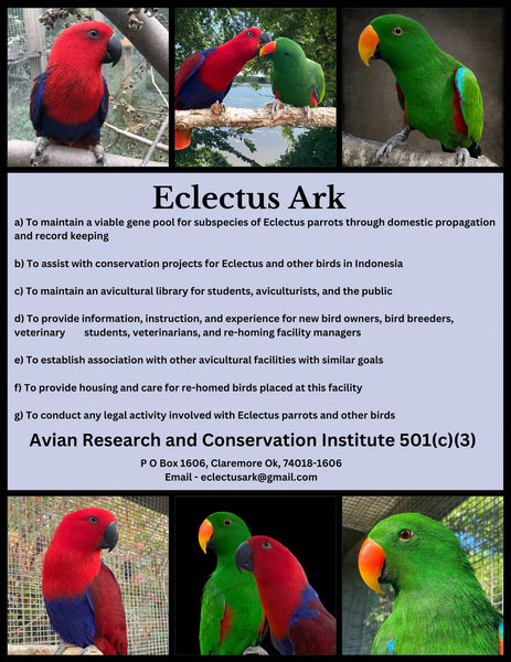 ✅ Proudly Supports Our Eclectus Parrot Conservation Program