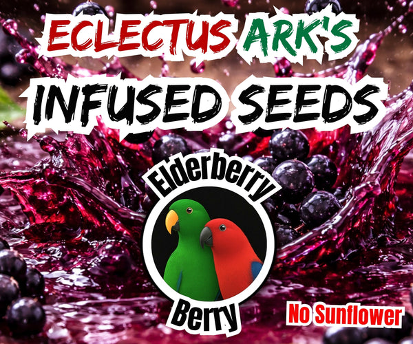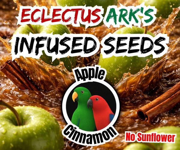 "May Contain a tiny portion of slipped through sunflower seeds" We filter the sunflower seeds out of our main seed mix here at Eclectus Ark, the same seed mix we feed our many birds."